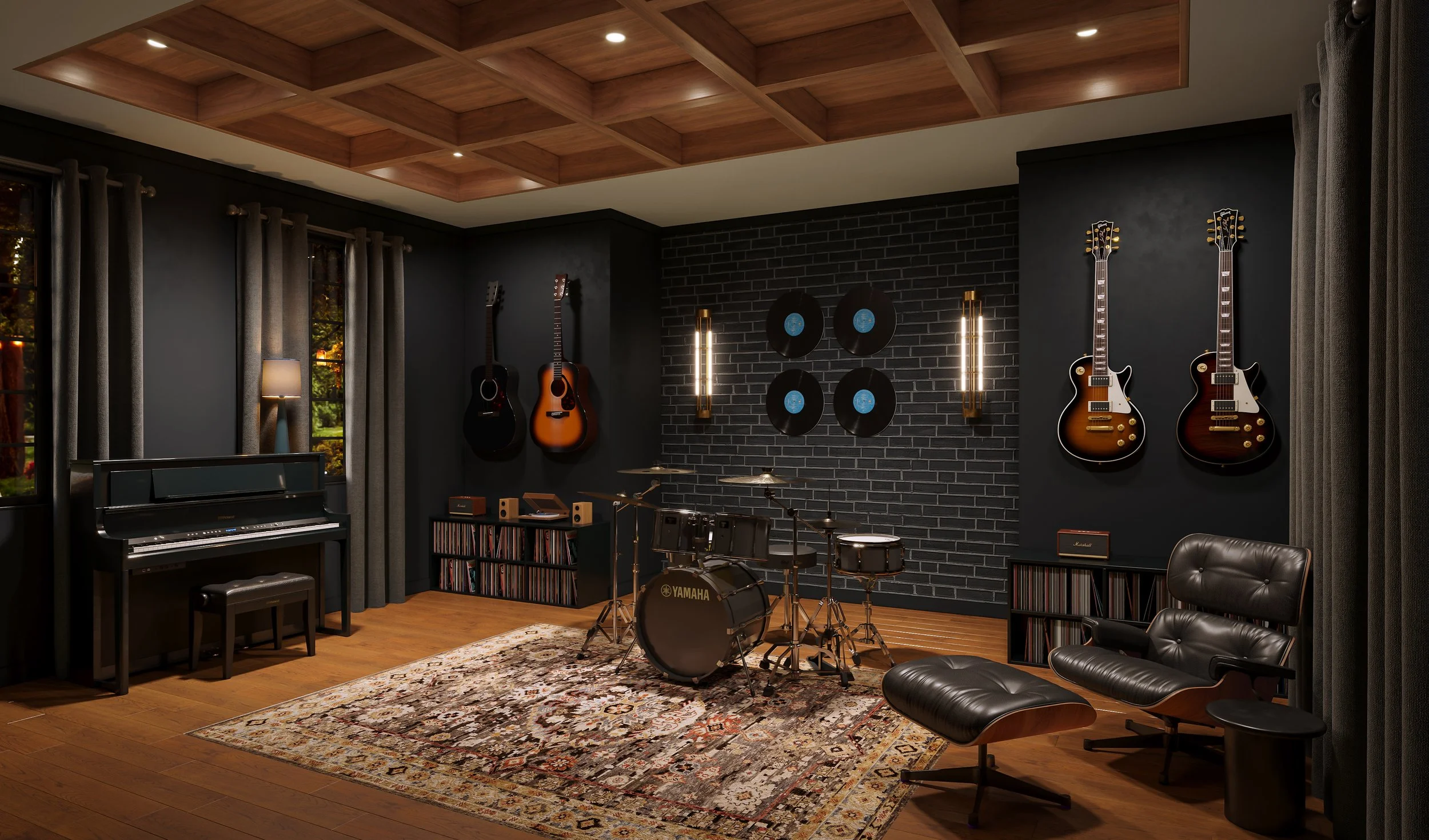 The architecture plays with scale, transitioning from the soaring verticality of the double-height entry to the moody, tactile embrace of the music room, enveloped in walnut and charcoal tones. This narrative of contrast continues outward, where the pool house serves not merely as an amenity, but as a holistic extension of the living space, blurring the boundaries between the built environment and the landscape to foster a deep sense of place.