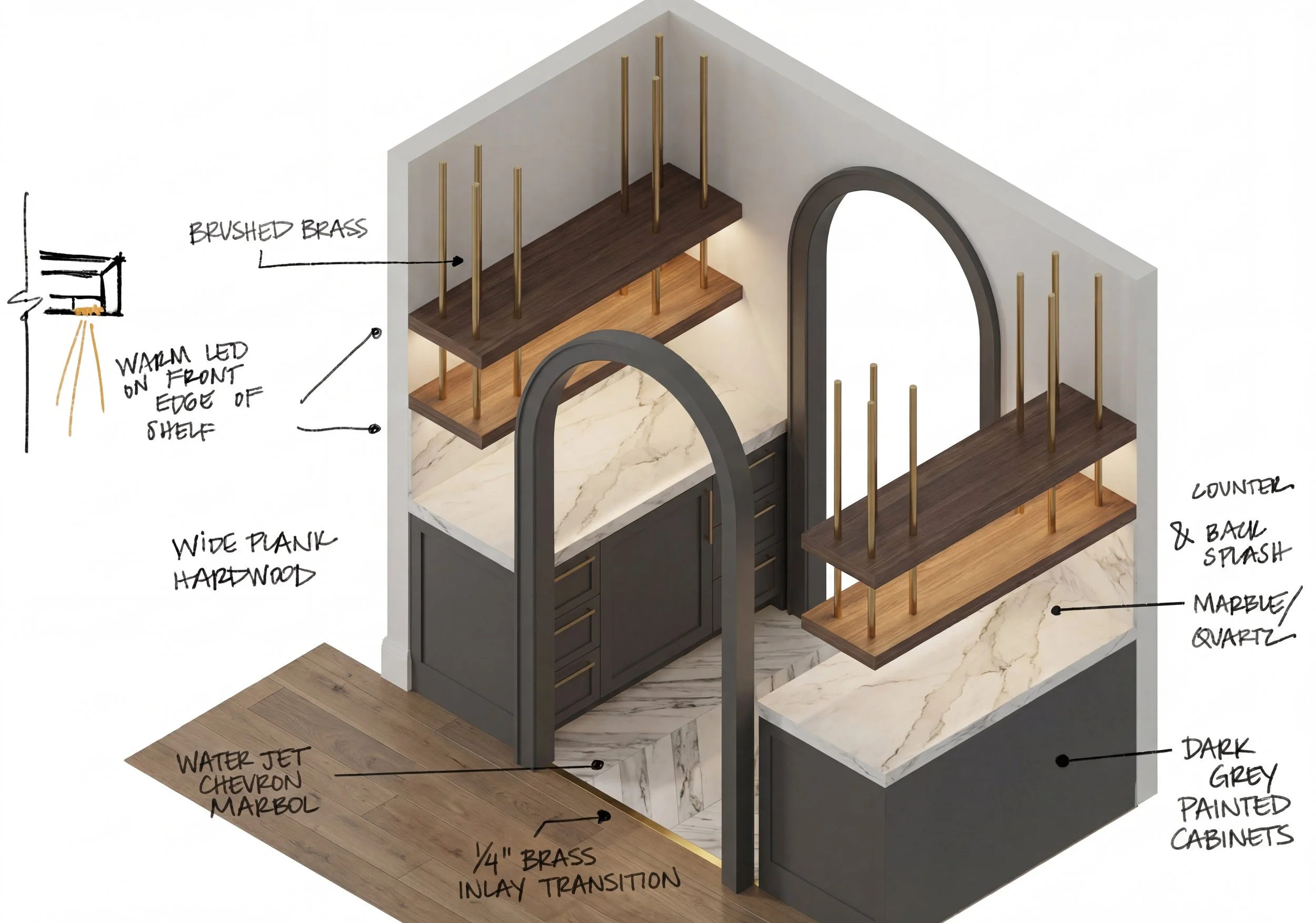The palette leans modern, but never cold. Clean lines and thoughtful materials pair with moments of softness: warm oak, textured plaster, and a whisper of brass. The result is a home that honors its roots while looking firmly toward the future.